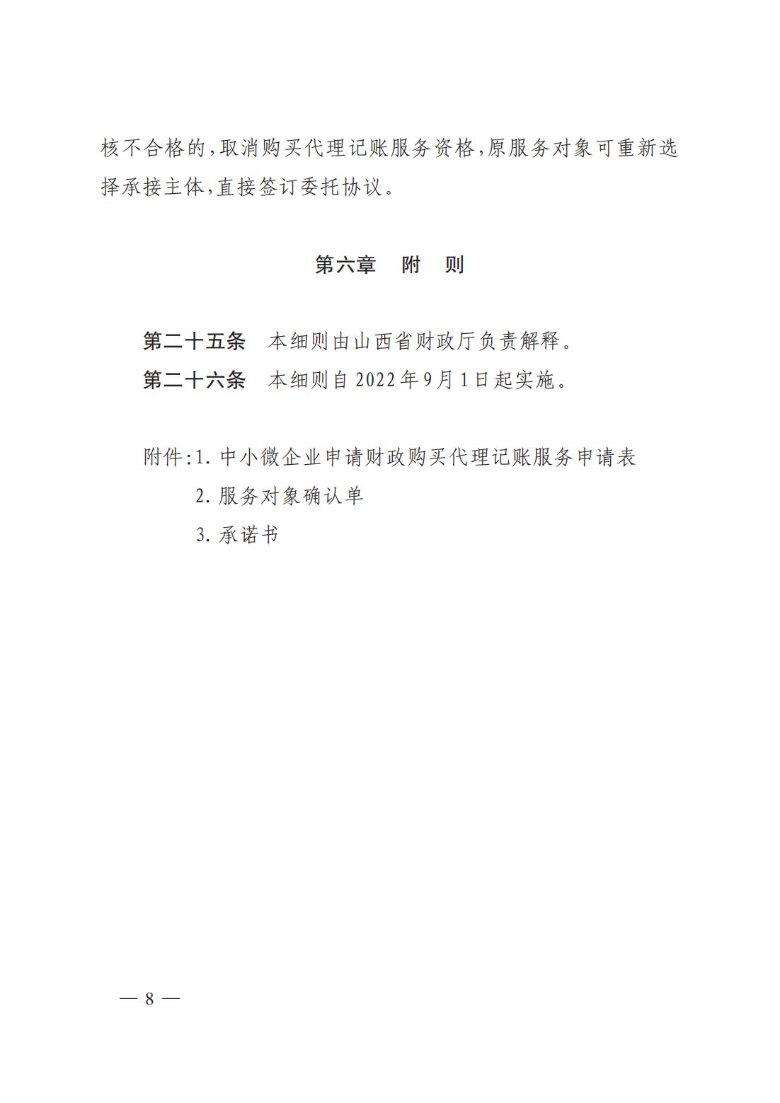 為進(jìn)一步支持全省中小微企業(yè)持續(xù)快速健康發(fā)展,切實(shí)加強(qiáng)和改進(jìn)會計(jì)服務(wù)能力,根據(jù)《山西省人民政府辦公廳關(guān)于印發(fā)強(qiáng)化市場主體倍增要素服務(wù)保障若干措施(試行)的通知》(晉政辦發(fā)〔2022〕7 號)、《山西省財(cái)政廳關(guān)于加快推進(jìn)云會計(jì)大數(shù)據(jù)服務(wù)平臺建設(shè)的實(shí)施意見》(晉財(cái)辦〔2022〕19 號)文件要求,省財(cái)政廳研究制定了《山西省財(cái)政廳為中小微企業(yè)購買代理記賬服務(wù)實(shí)施細(xì)則(試行)》,現(xiàn)予以印發(fā),請結(jié)合工作實(shí)際,認(rèn)真抓好貫徹落實(shí)。